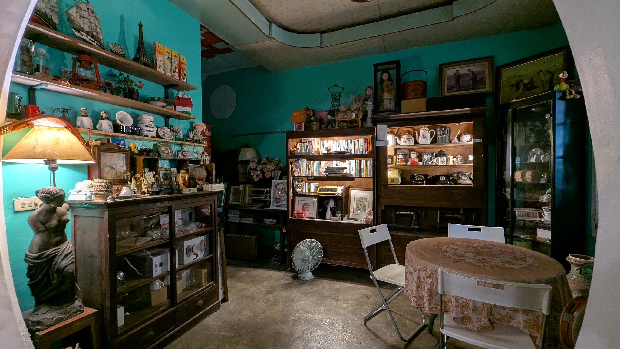 豐明園咖啡不只是一家喝咖啡的地方,更像是一座老物博物館,每件擺設背後都藏著故事。光是被爬牆虎包覆的圍牆與大門,就夠吸引人。這裡曾經是屏東縣第一屆縣議員曾勤華故居,如今老屋化為咖啡空間,屋內收藏著半世紀前的各式老物——電風扇、打字機、收音機、琺瑯廣告牌與懷舊桌椅,每一件都帶著時間的痕跡。在這裏,喝咖啡變成一種聆聽——聽時間的聲音,聽土地的故事。那是一種竹田特有的慢與柔:不張揚,不造作,只用光、植物與老物,讓人重新想起「安靜生活」是什麼樣子。