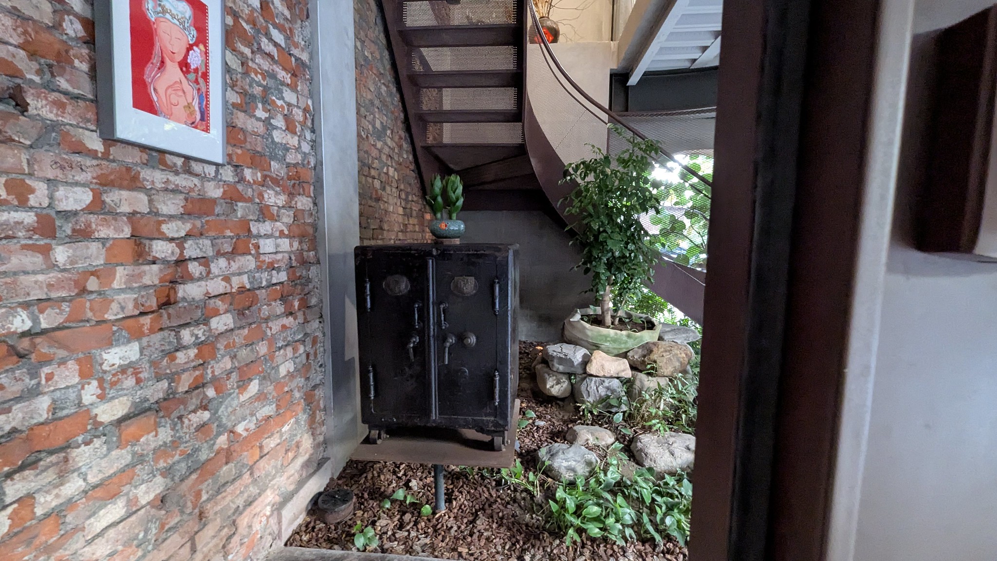 德旅店的建築前身,是當地老字號「德興碾米廠」的舊廠舍。建於 1969 年,原為糧食局與碾米廠的辦公與宿舍,用以見證竹田農業黃金年代的繁盛。門口那塊寫著「Since 1969的鐵製門牌,並非旅店創立年份,而是這棟老屋誕生的時間標記。還有一個神秘的保險櫃,在改建時被找到,至今仍無法在不破壞櫃體的狀況下打開,屋主就將這神秘保險櫃放置在上樓顯眼處,像是鎖住了一段約莫一甲子的寶藏與光陰。