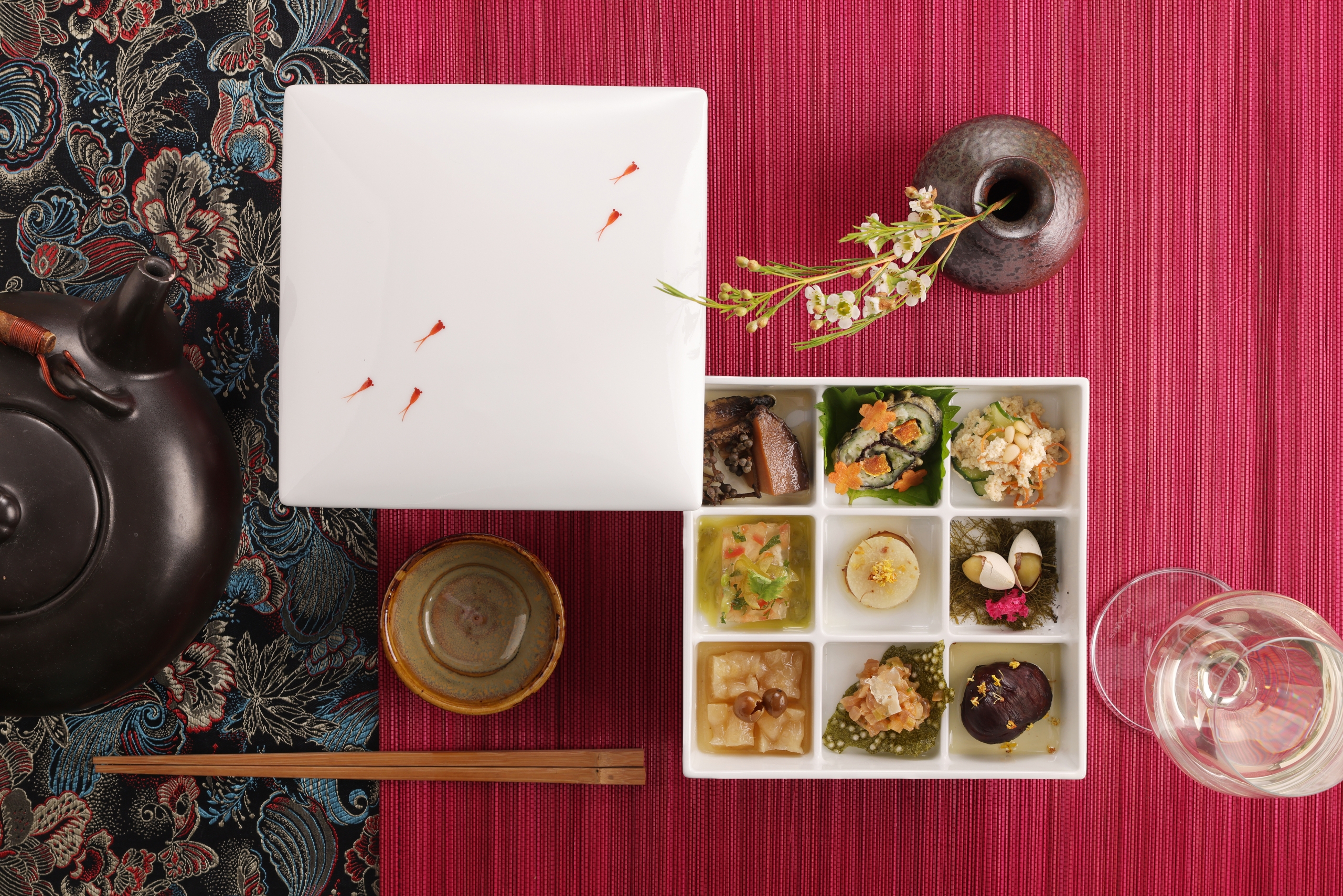隨後登場的【如意珍寶盒】以割烹八寸為靈感,九格小品各具風情,映照大正時期飲食工藝的繁複與精緻。