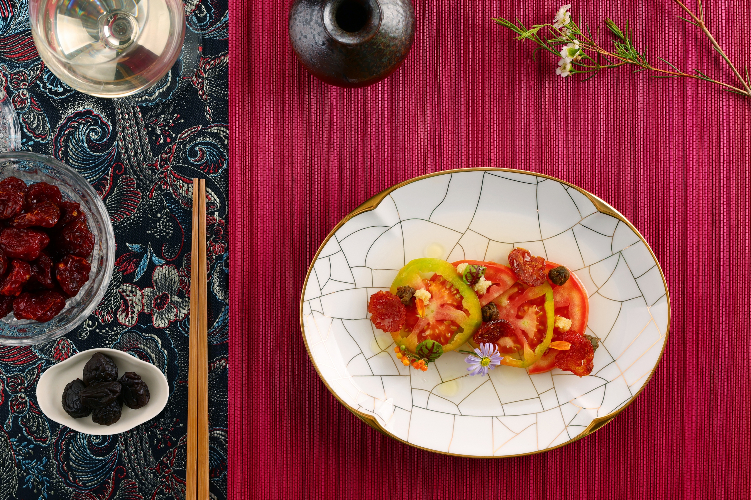 接續【薑汁黑糖番茄】,以荷人引進的黑柿番茄為主角,去皮後佐薑泥與黑糖露,酸甘之間,映照日治時期的舶來風情。再以承襲閩菜精神的【扁魚春捲】轉場,油香酥脆,是記憶中的老台北味。