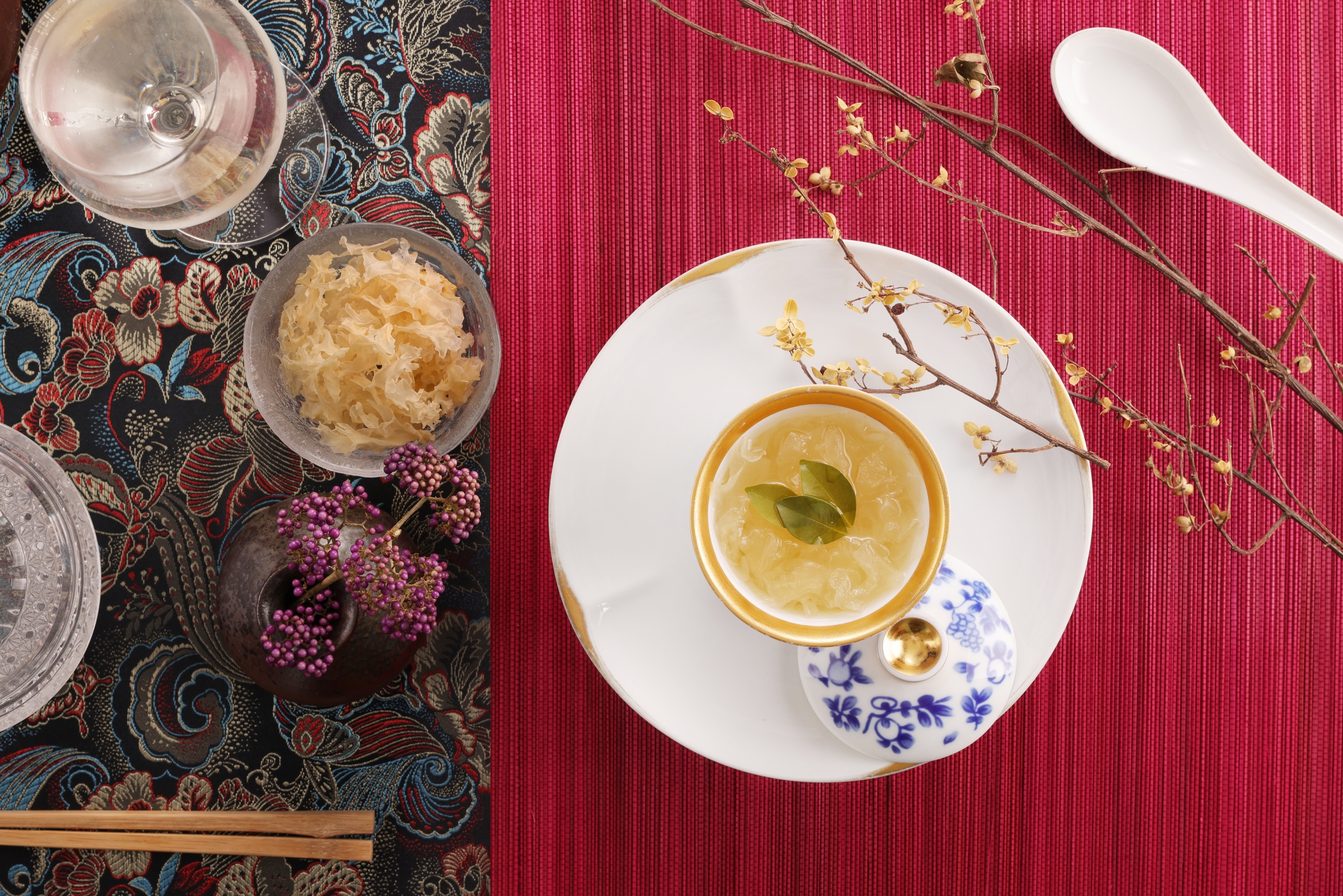 開場的【金湯素燕盞】以滴雞精為湯底,融入雪燕、白木耳與人蔘鬚,溫潤滑順,像百年前的禮讚序曲,暖胃亦暖心。