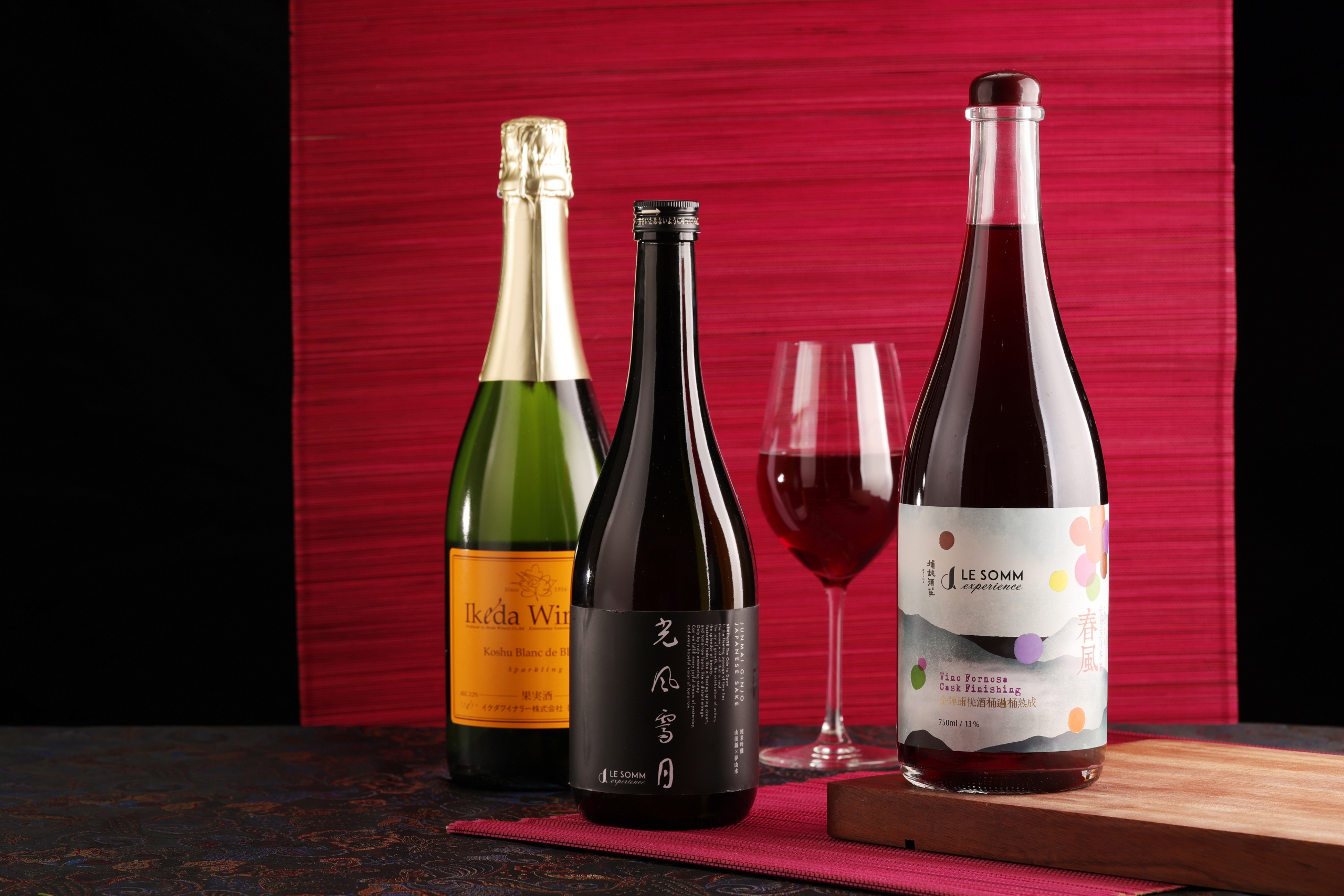 宴席搭配三款酒,呼應台灣與日本釀造史的交錯。池田甲州白中白氣泡酒來自山梨縣富士山下,酸香明亮,是明治維新後日本釀酒文明的象徵;光風霽月純米吟釀則由山海樓與日本關谷酒造跨國合作,以山田錦與夢山水釀成,氣質清朗;春風紅葡萄酒由台灣釀酒師陳千浩以彰化巨峰晚熟葡萄釀造,香氣濃縮,果皮比例高,反而造就深邃風味,象徵台灣釀酒文化的新生。