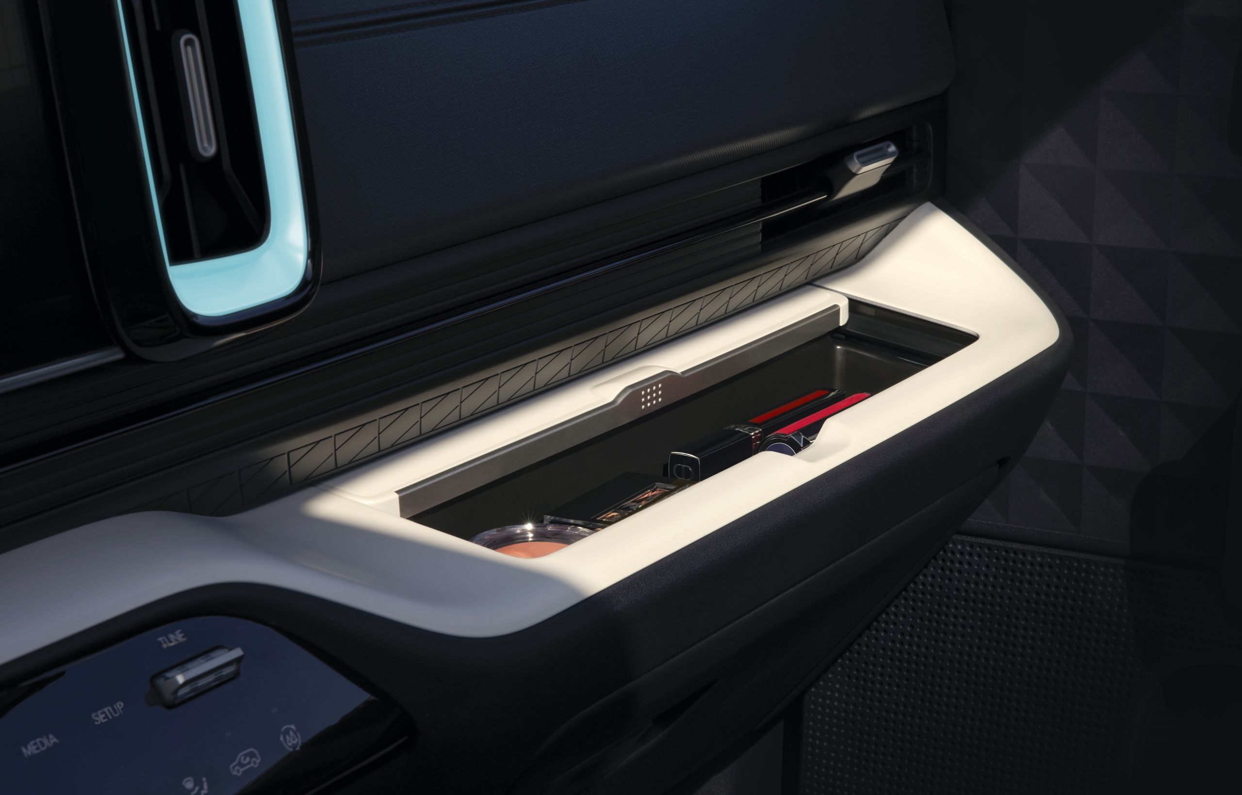 然而,MUFASA 迷人的設計語彙並不僅止於外觀,進入座艙後,更能感受到它以人 為本的設計脈絡,第一個印象不是「汽車」,而更接近一個以功能與舒適為核心的 apartment unit。Hyundai 在設計中提出「Multi-Zone」多區概念,將駕駛席、副駕席、後座區分為不同的生活場域——就像一個開放式住宅中的「起居區」、「工作區」與「休憩區」,讓座艙不只是移動場域,更是生活的延伸。