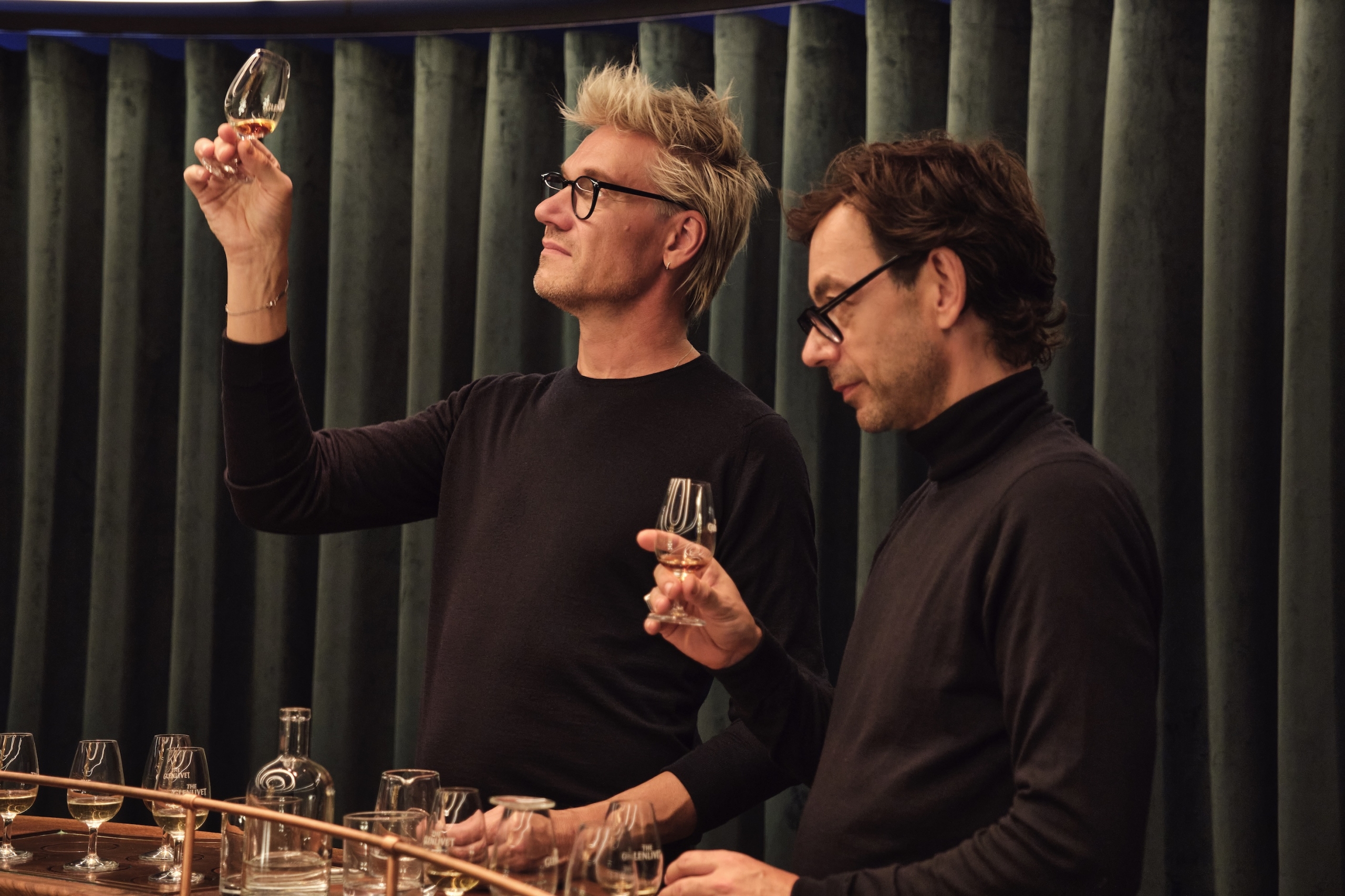 「格蘭利威永恆系列─第二篇章 56 年原酒」最令人著迷的,不僅是超高年份酒液的珍稀性,更在於格蘭利威與倫敦前衛設計組合 Fredrikson Stallard 所展開的跨界合作。Fredrikson Stallard 由瑞典裔英國設計師 Ian Stallard 與 Patrik Fredrikson 所組成,作品橫跨藝術、設計與實驗創作,以雕塑性的線條語彙與跨材質構造聞名,其創作不僅被 MoMA、倫敦 V&A 與 David Gill Gallery 等世界重要機構收藏,更被《金融時報》選為「過去十年間全球十大最佳設計團隊」。