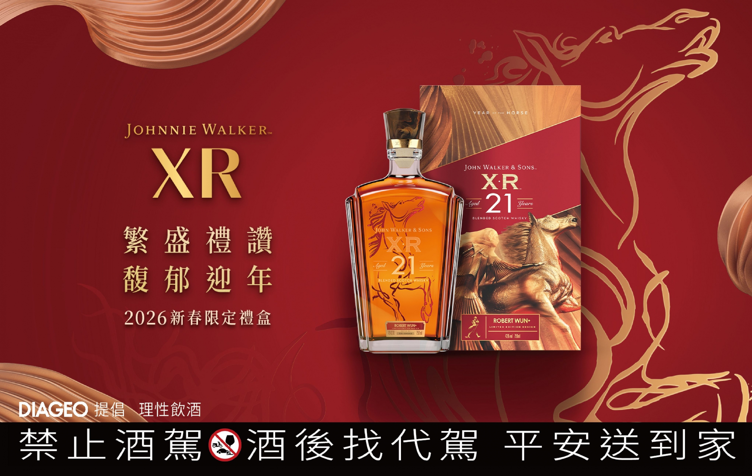 #AD 對時代引領者來說,時間的意義從不只是生肖的更迭,而是一場關於視野、洞察與膽識的進階。迎向 2026 馬年——象徵前瞻、敏銳與奔馳不息的生命力,Johnnie Walker  承襲「Keep Walking」品牌精神,攜手國際時裝大師  Robert Wun,將引領時代的動能,凝鍊為「藍牌馬年限定瓶」與「XR21年 2026 新春限量禮盒」。這不僅是威士忌工藝與高訂時尚的極致交匯,更透過酒精濃度嶄新演繹與風味層次再造,為經典風味開創全新品味視野,於馬年啟程與年節相贈的時刻,成為兼具收藏價值與祝賀寓意的新春送禮首選,邀請人們以無畏姿態先一步感知風向,舉杯致敬持續前行、永不停歇的馥郁人生。