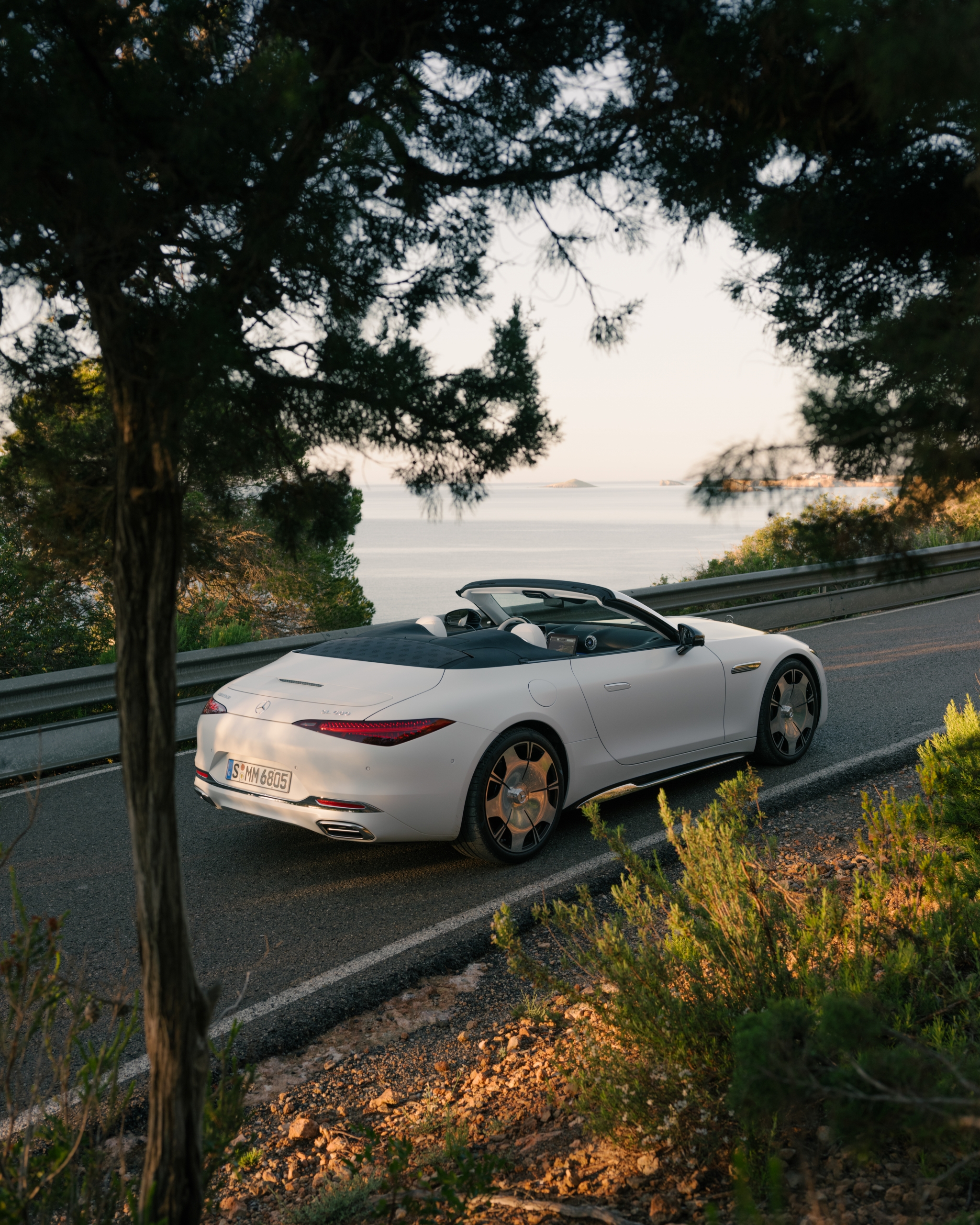 此外,Mercedes-Maybach SL 搭載的 12.3 吋數位儀錶與 11.9 吋中控觸控螢幕,猶如雙幅光影畫布,隨場景而變幻,白晝之下,它們映照出清澈流暢的色彩;入夜之時,則與氛圍燈呼應,營造出流動的舞台感,讓每一次旋鈕的轉動、指尖的觸碰,都像展開一段嶄新表演序幕。而當引擎聲低鳴響起,深沉的排氣聲浪宛若音樂廳的前奏,由 Burmester® 高階音響系統延伸成多維立體聲場,將聲音昇華為沉浸式的裝置藝術,此刻,駕駛艙早已超越單純的功能空間,而是一座隨時能啟幕的多媒體藝術展場,