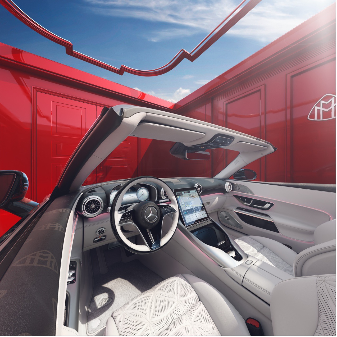 不僅將汽車變成「移動展覽空間」, Maybach 更讓藝術從靜態展示推進成為奔放的動態藝術體驗。而 Mercedes-Maybach SL 正是動態伸展台上最耀眼的主角:它不僅是一輛敞篷跑車,更是一件移動的藝術品,完美結合百年工藝與自由靈魂,讓駕馭不再只是抵達的過程,而是親身參與一場沉浸於感官與靈魂的藝術盛典。