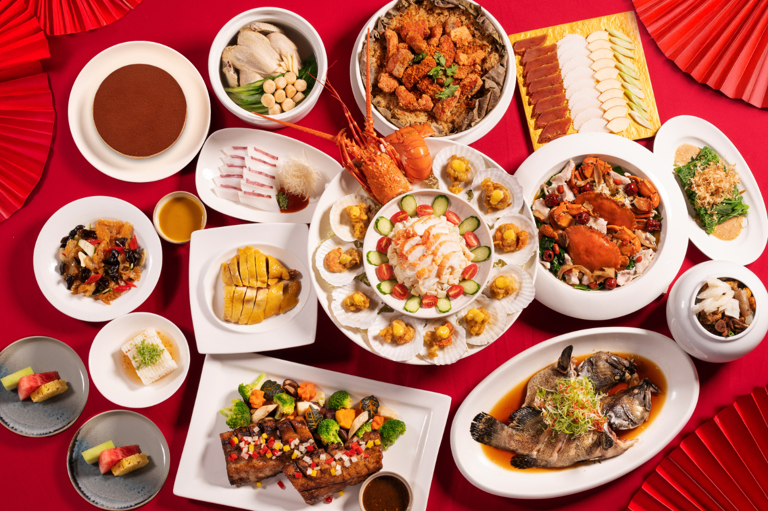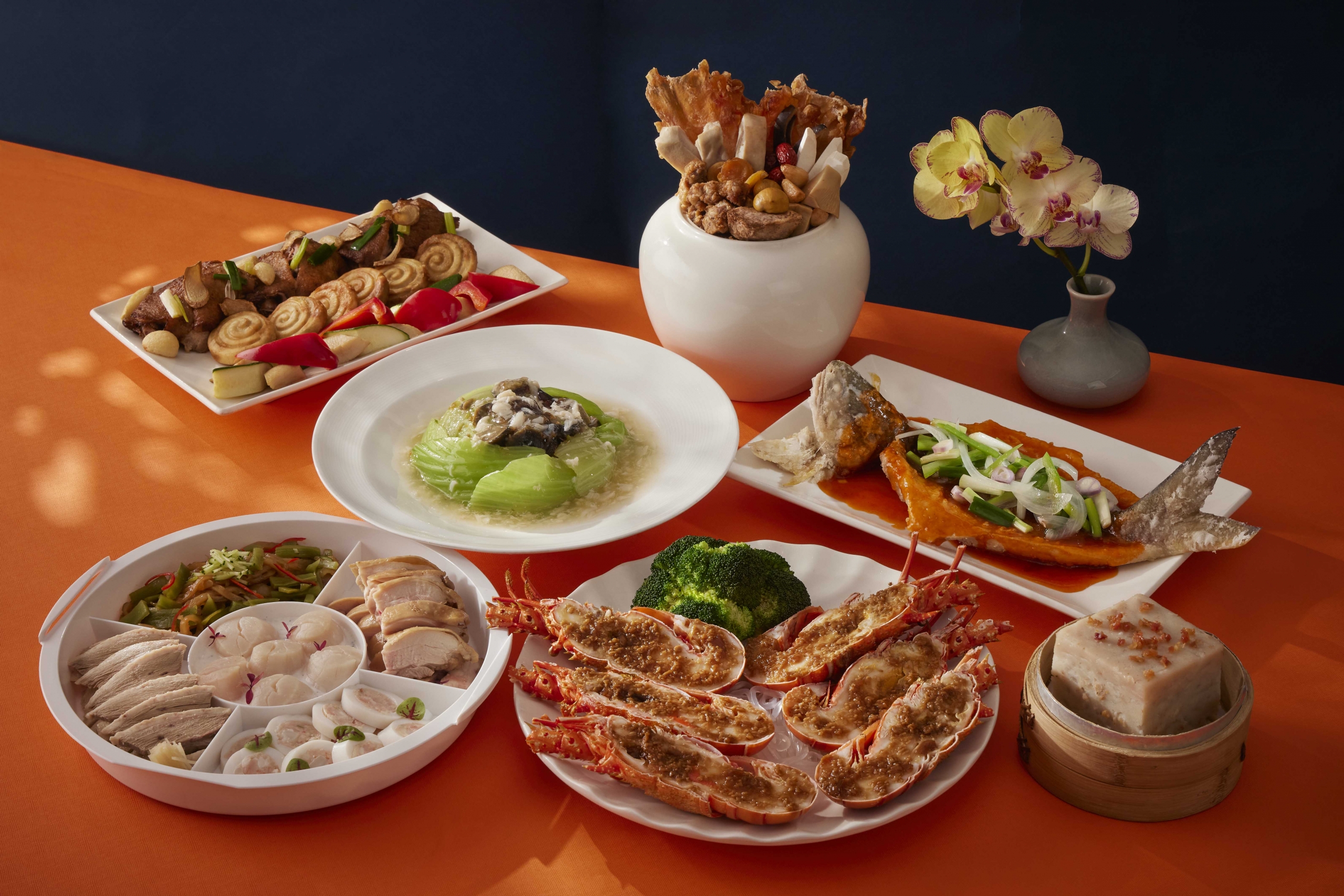香宮的龍蝦盆菜與元貝燉雞湯,氣勢完整;醉月樓的沙母鮑魚米糕與花膠燉雞,節奏較慢,適合長時間圍坐。單點與套組並行,讓家庭能自行決定年夜飯的完整程度。
