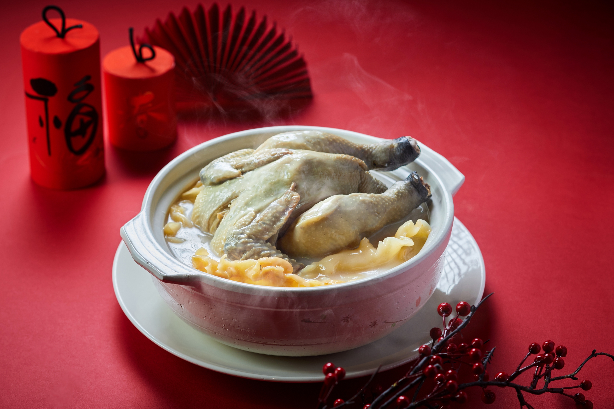 香宮的龍蝦盆菜與元貝燉雞湯,氣勢完整;醉月樓的沙母鮑魚米糕與花膠燉雞,節奏較慢,適合長時間圍坐。單點與套組並行,讓家庭能自行決定年夜飯的完整程度。